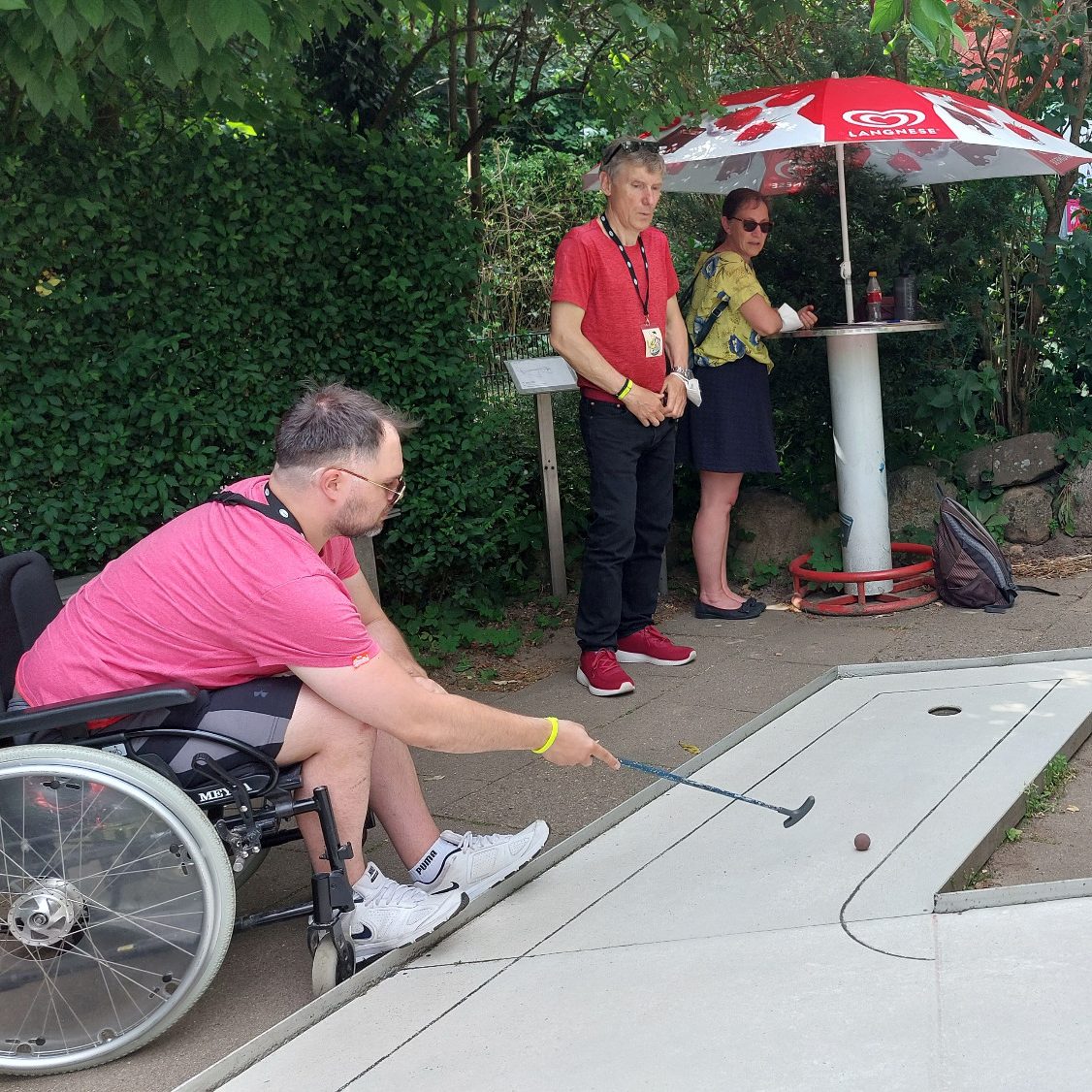 Bereits im dritten Jahr erfreuen sich unsere Minigolf-Spieltage großer Beliebtheit. Der Platz ist barrierefrei und es gibt rollstuhlgerechte Toiletten. Wir spielen in kleinen Teams und die Profi-Spieler vom VfL Lohbrügge unterstützen uns mit tollen Tipps. Ein Kiosk versorgt uns mit Pommes, Wurst, Eis und Getränken. Am Ende gibt es eine Siegerehrung mit tollen Preisen.