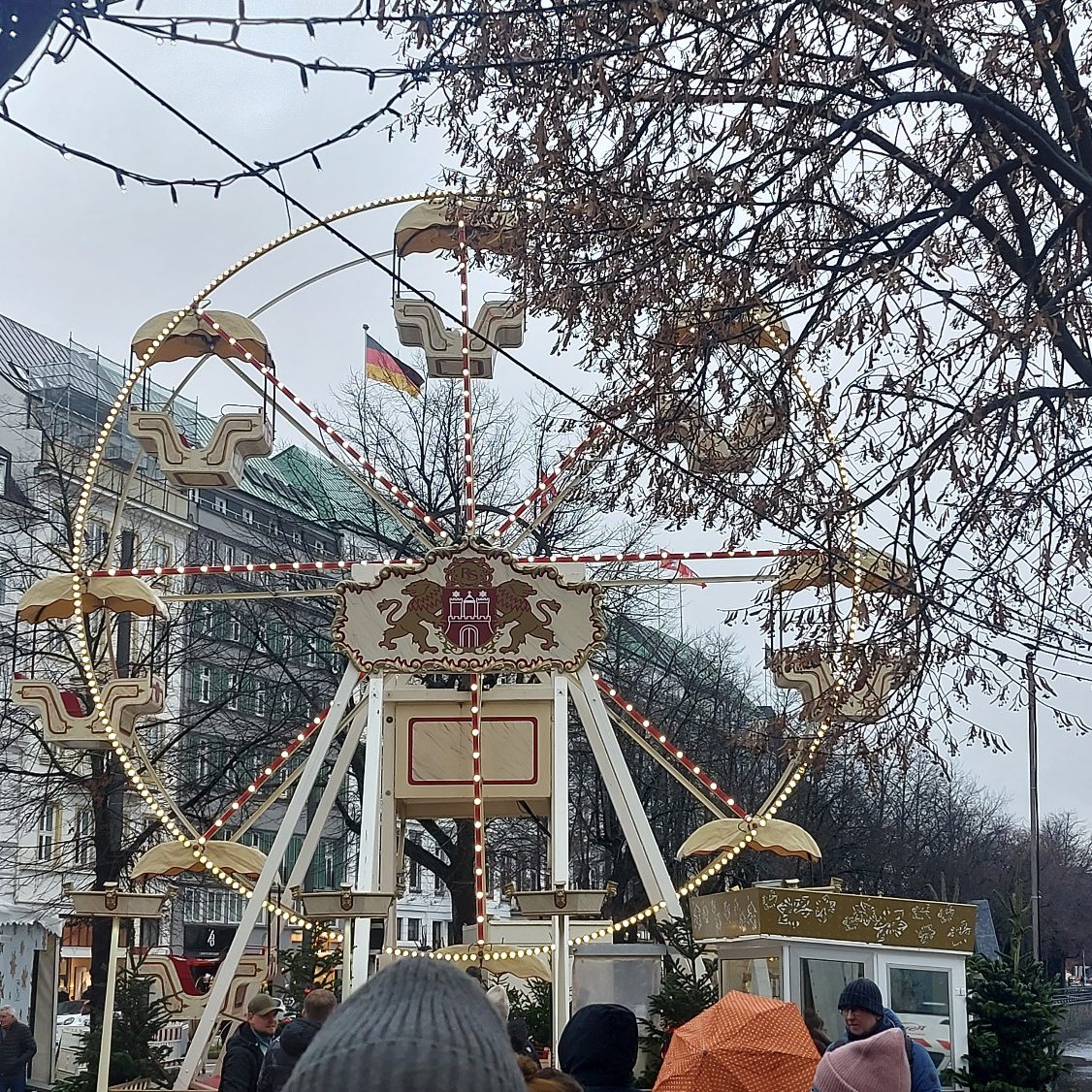 Im Foyer der Staatsoper haben ein Pianist und eine Solistin lateinamerikanische Lieder gesungen. Beim anschließenden Bummel über den Weihnachtsmarkt am Jungfernstieg haben wir Schmalzkuchen genascht. Leider war das Wetter etwas verregnet. Später haben wir uns noch Hamburger mit Pommes schmecken lassen.